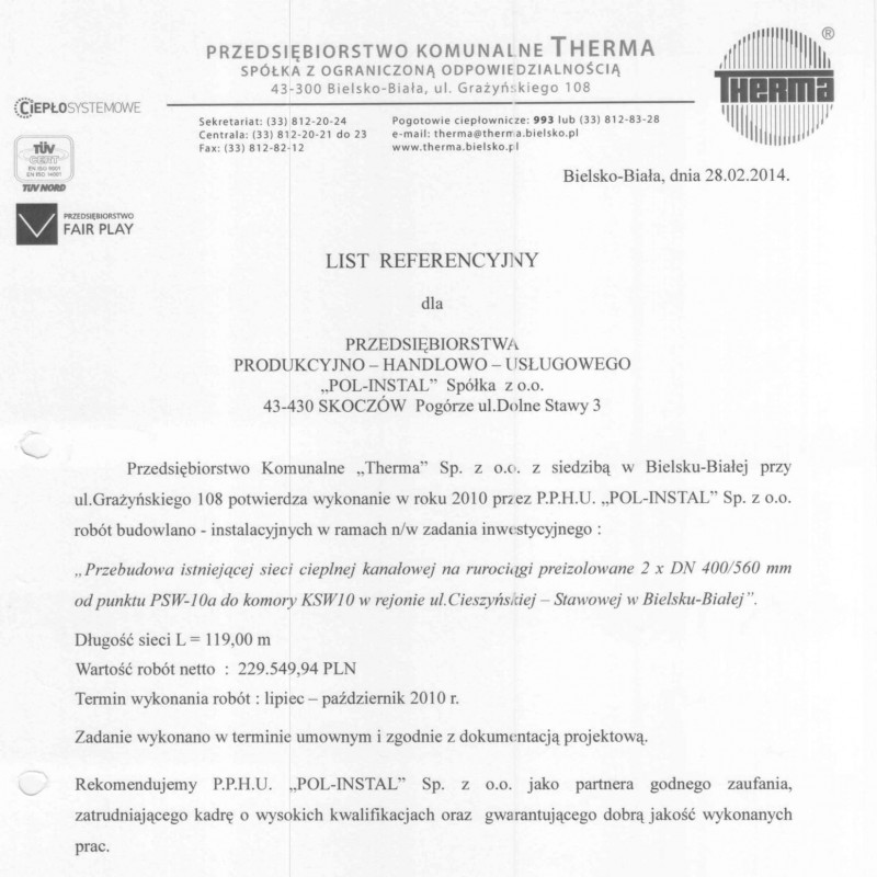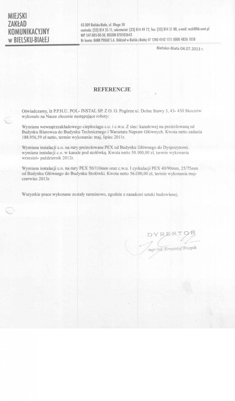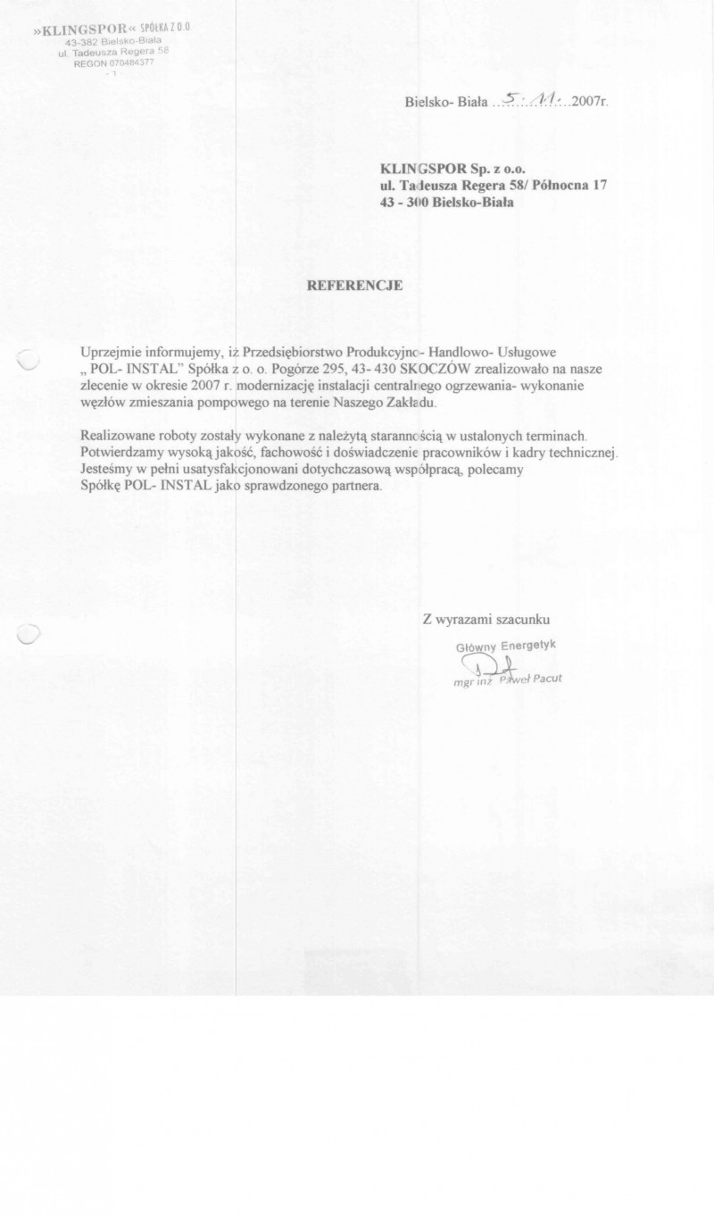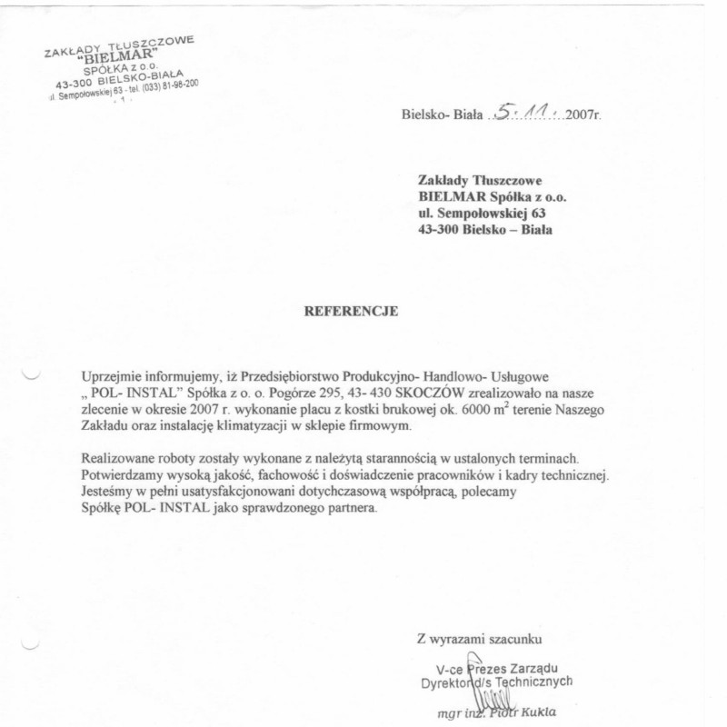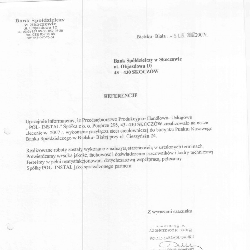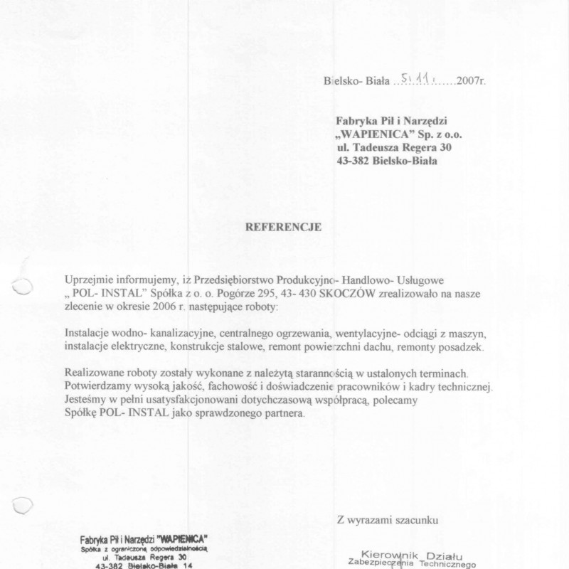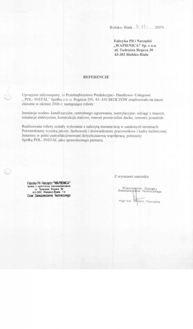 Posiadamy referencje, które obrazują zakres naszej działalności, zarówno w przemyśle, jak i budownictwie użyteczności publicznej, a także w gospodarce komunalnej – sieci ciepłowniczych, gazowych, wodociągowych, kanalizacyjnych.