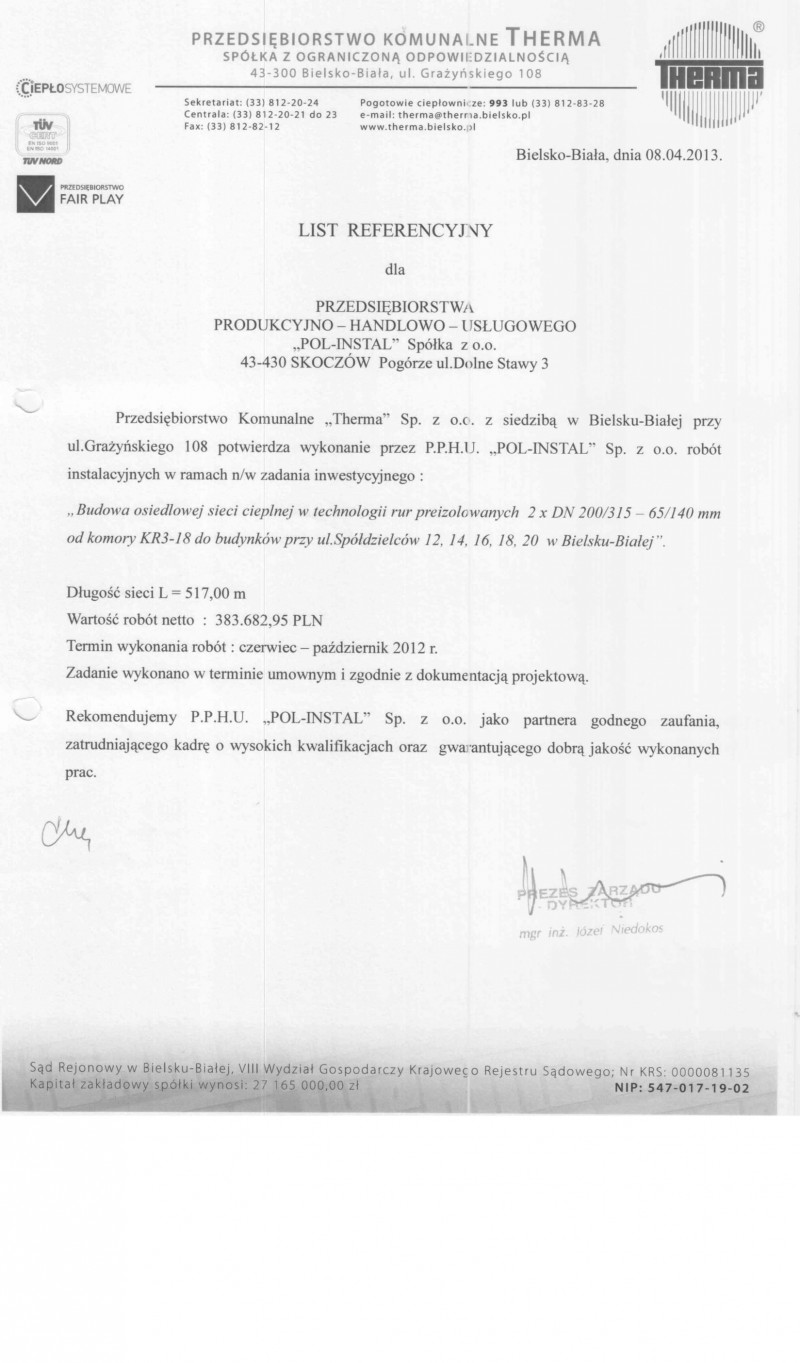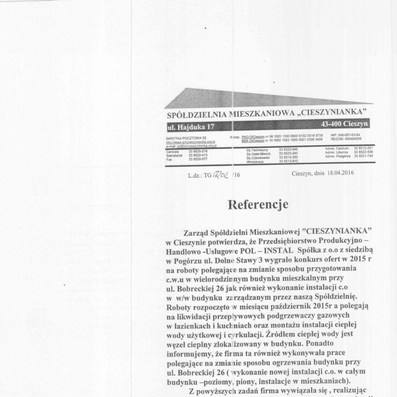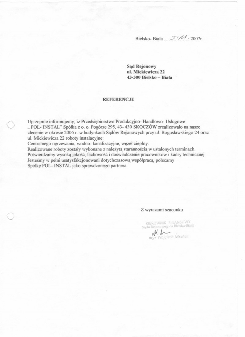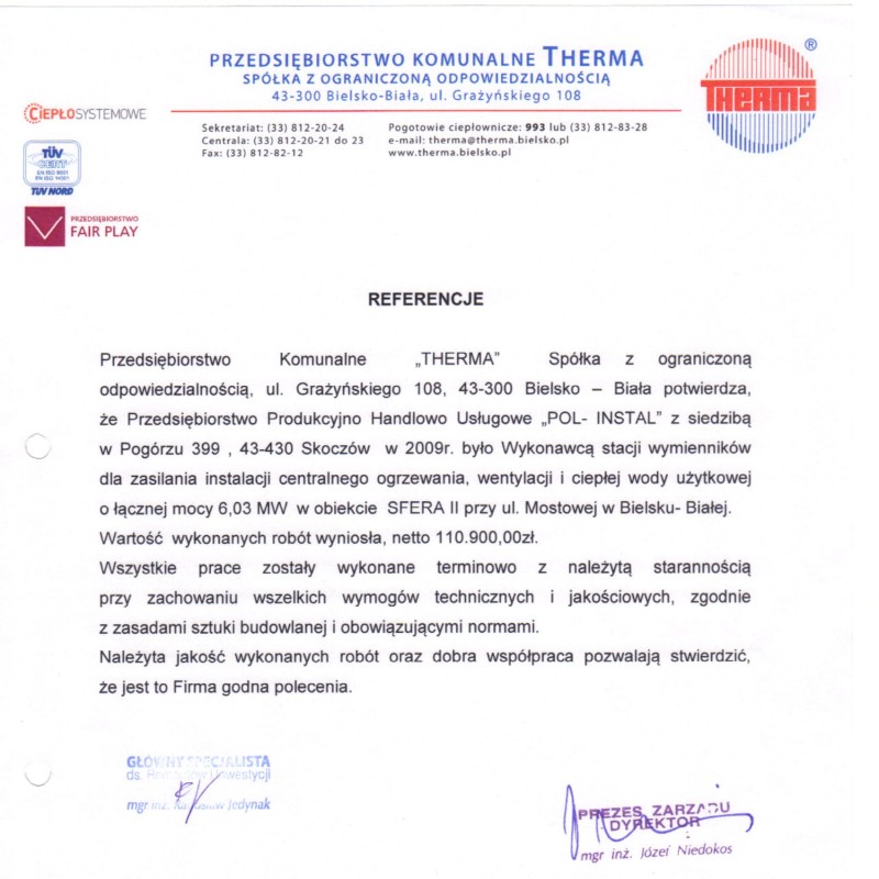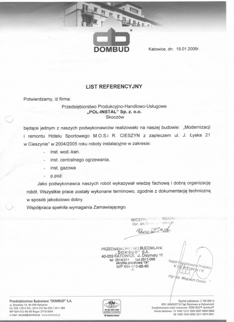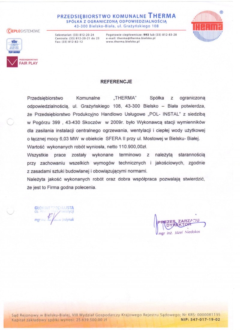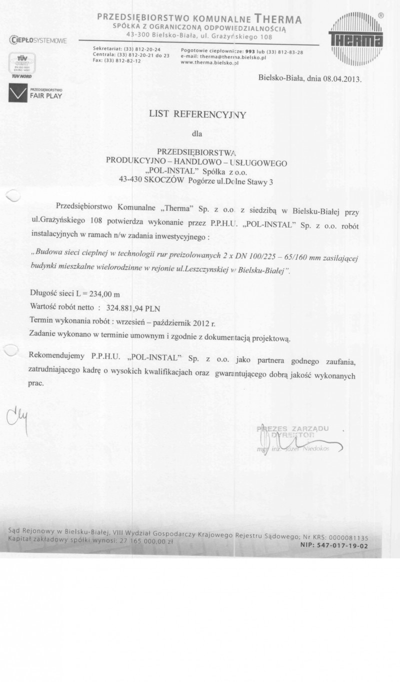 Posiadamy referencje, które obrazują zakres naszej działalności, zarówno w przemyśle, jak i budownictwie użyteczności publicznej, a także w gospodarce komunalnej – sieci ciepłowniczych, gazowych, wodociągowych, kanalizacyjnych.