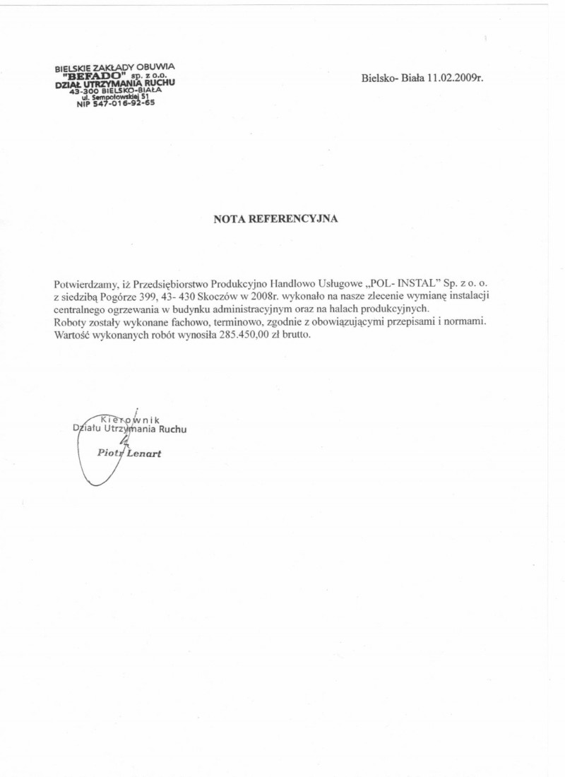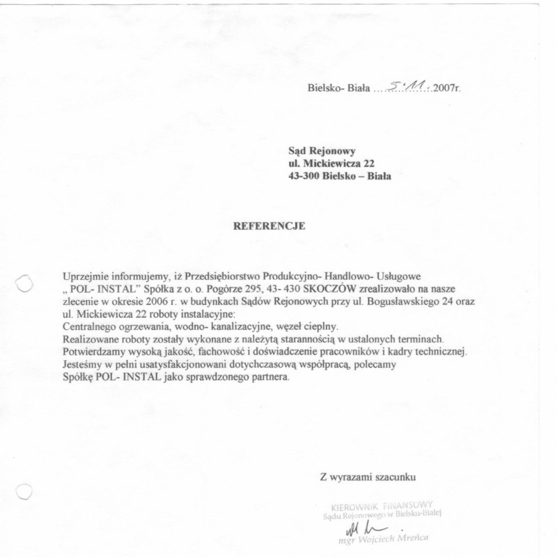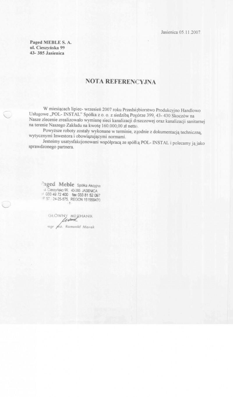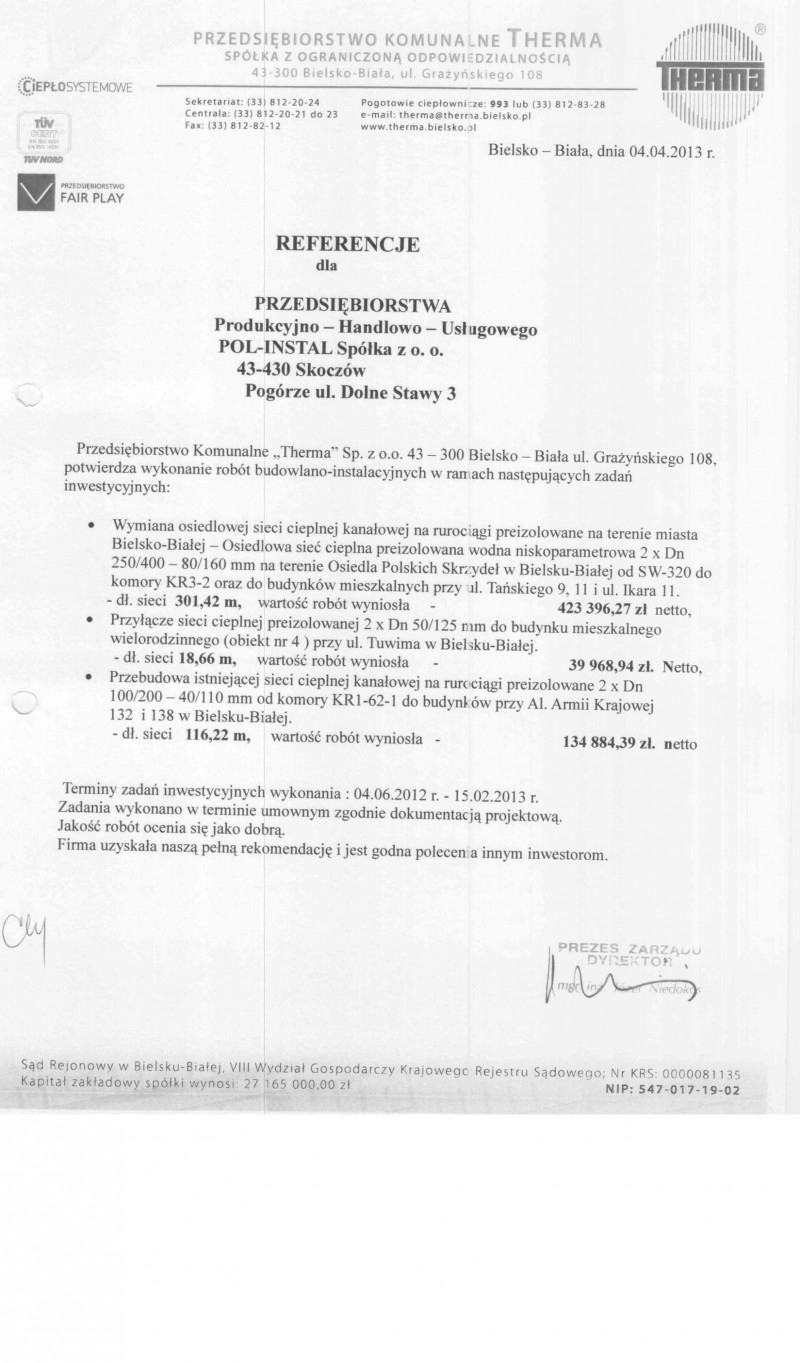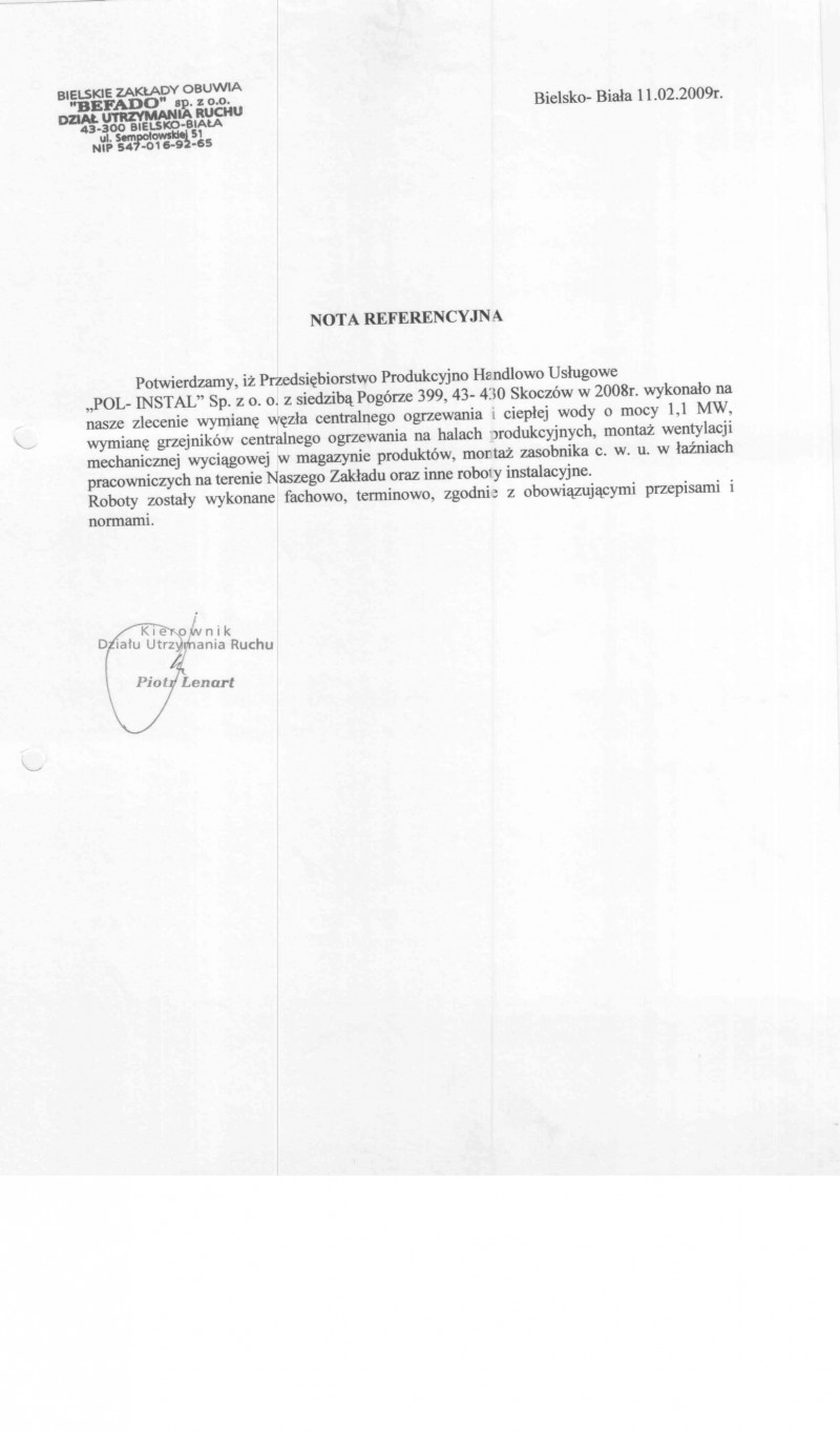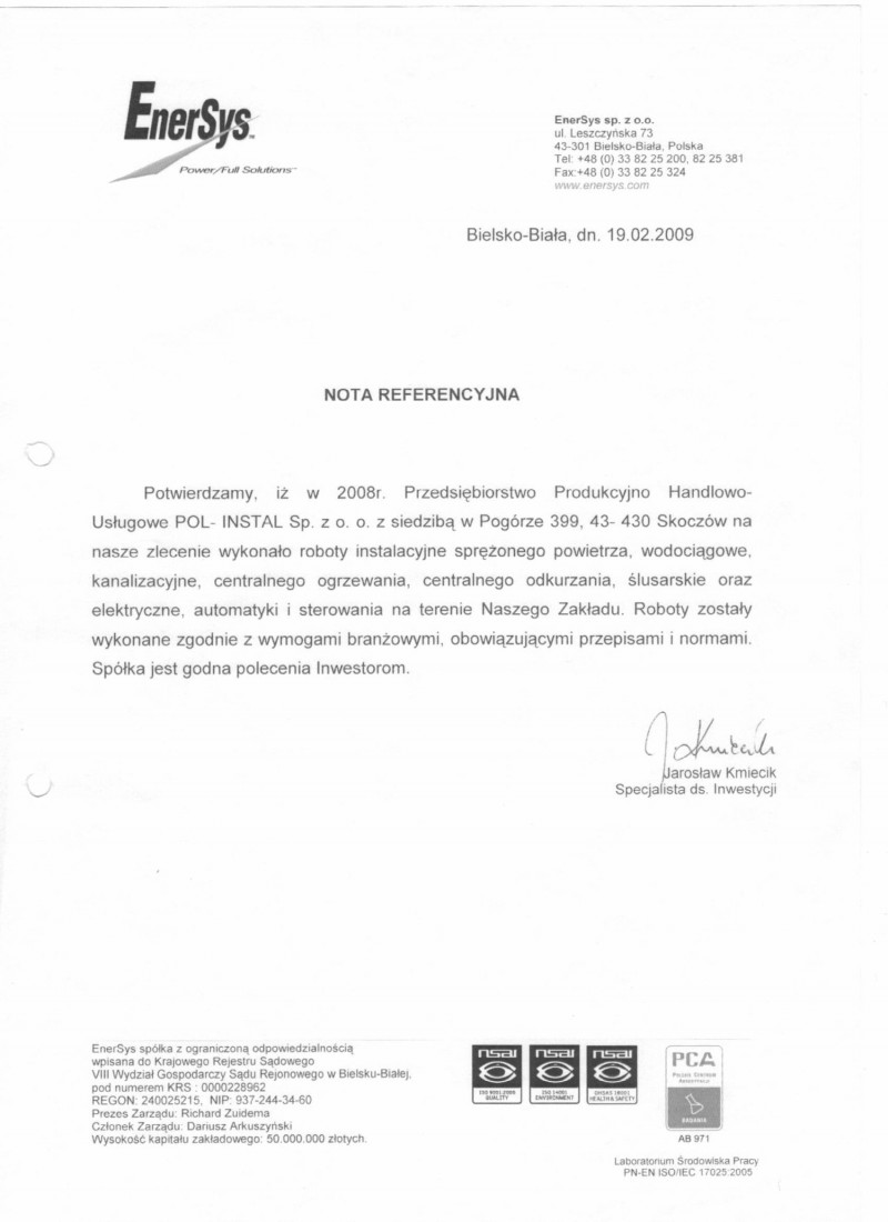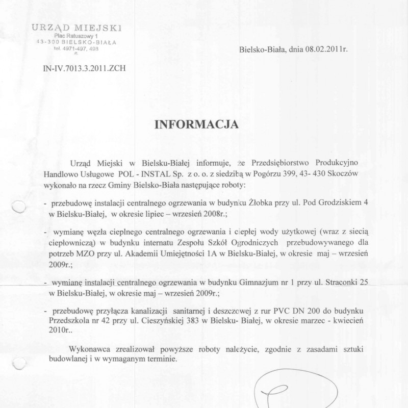 Posiadamy referencje, które obrazują zakres naszej działalności, zarówno w przemyśle, jak i budownictwie użyteczności publicznej, a także w gospodarce komunalnej – sieci ciepłowniczych, gazowych, wodociągowych, kanalizacyjnych.