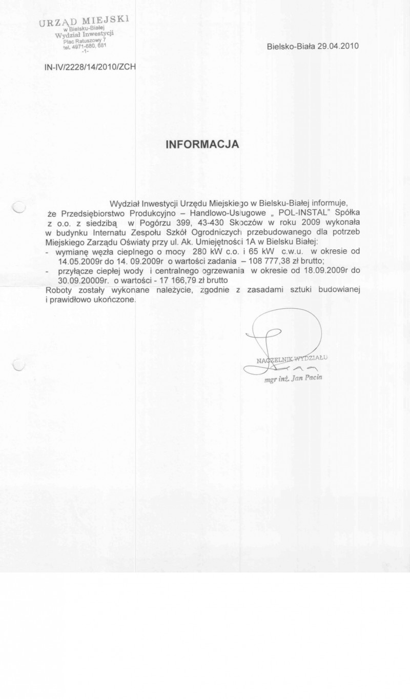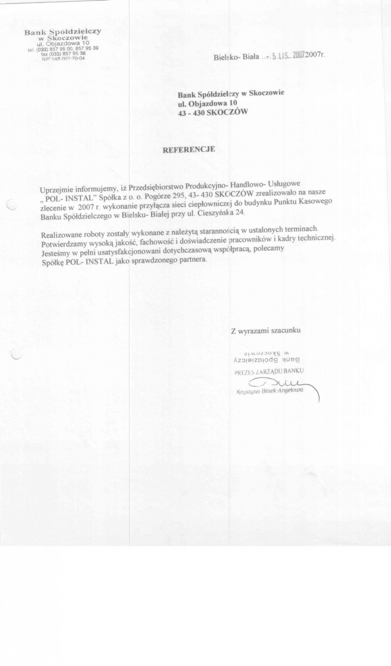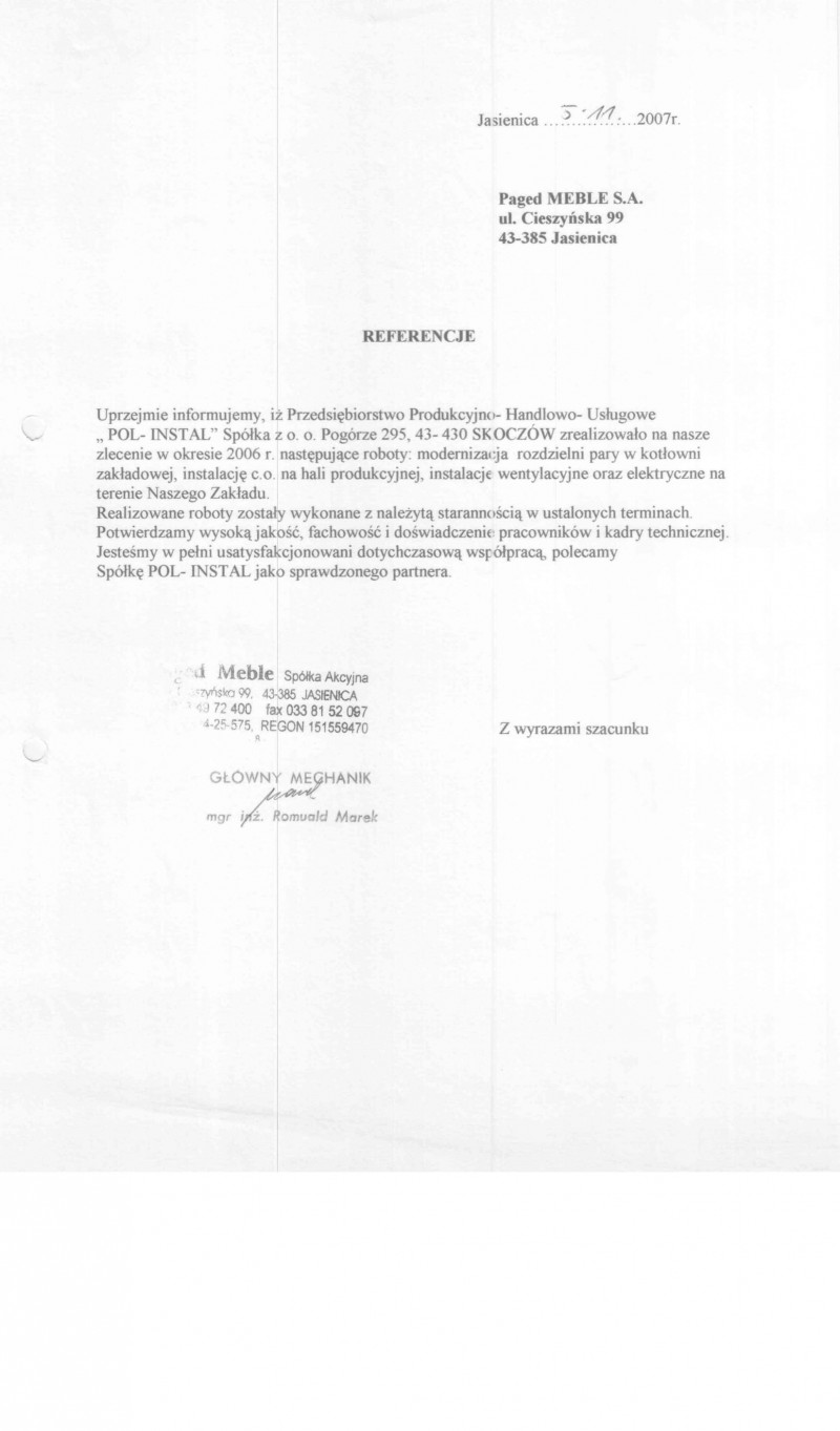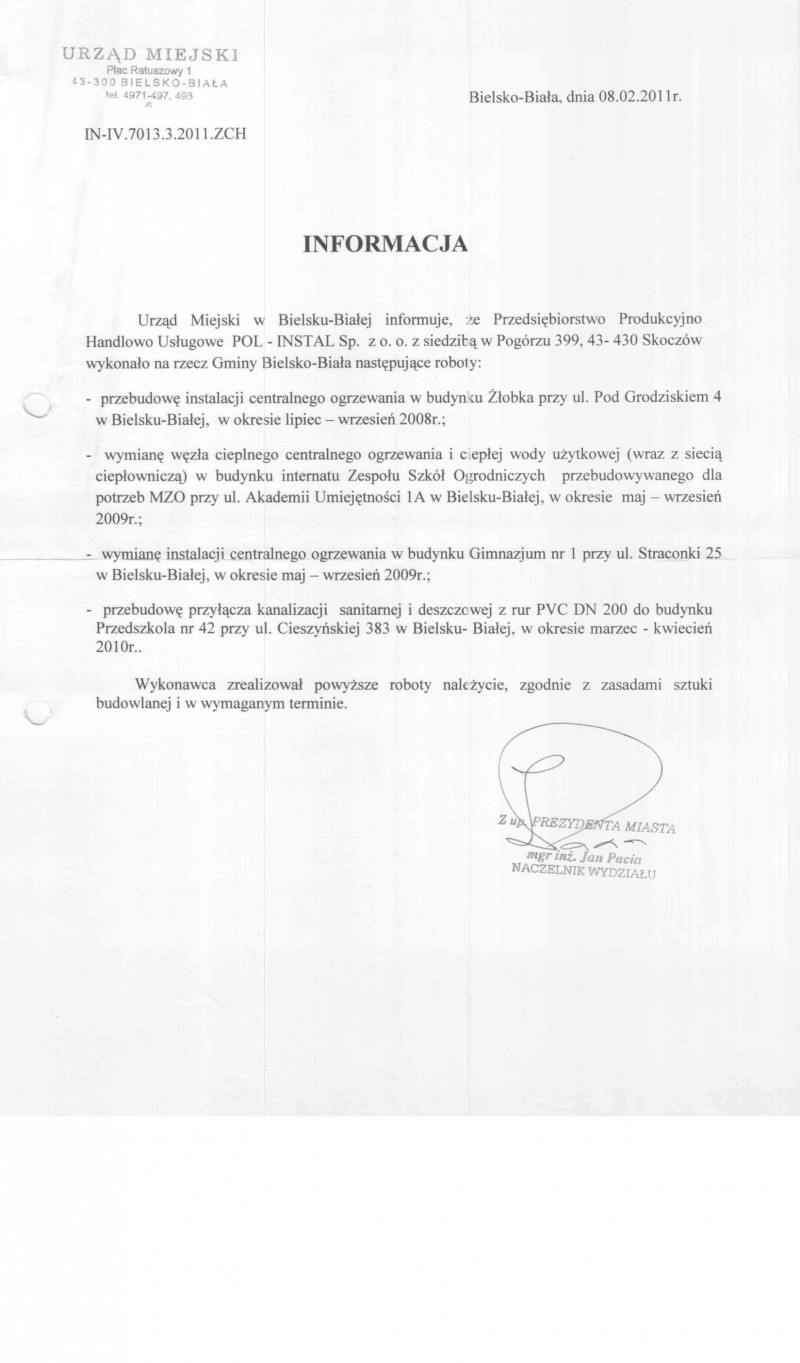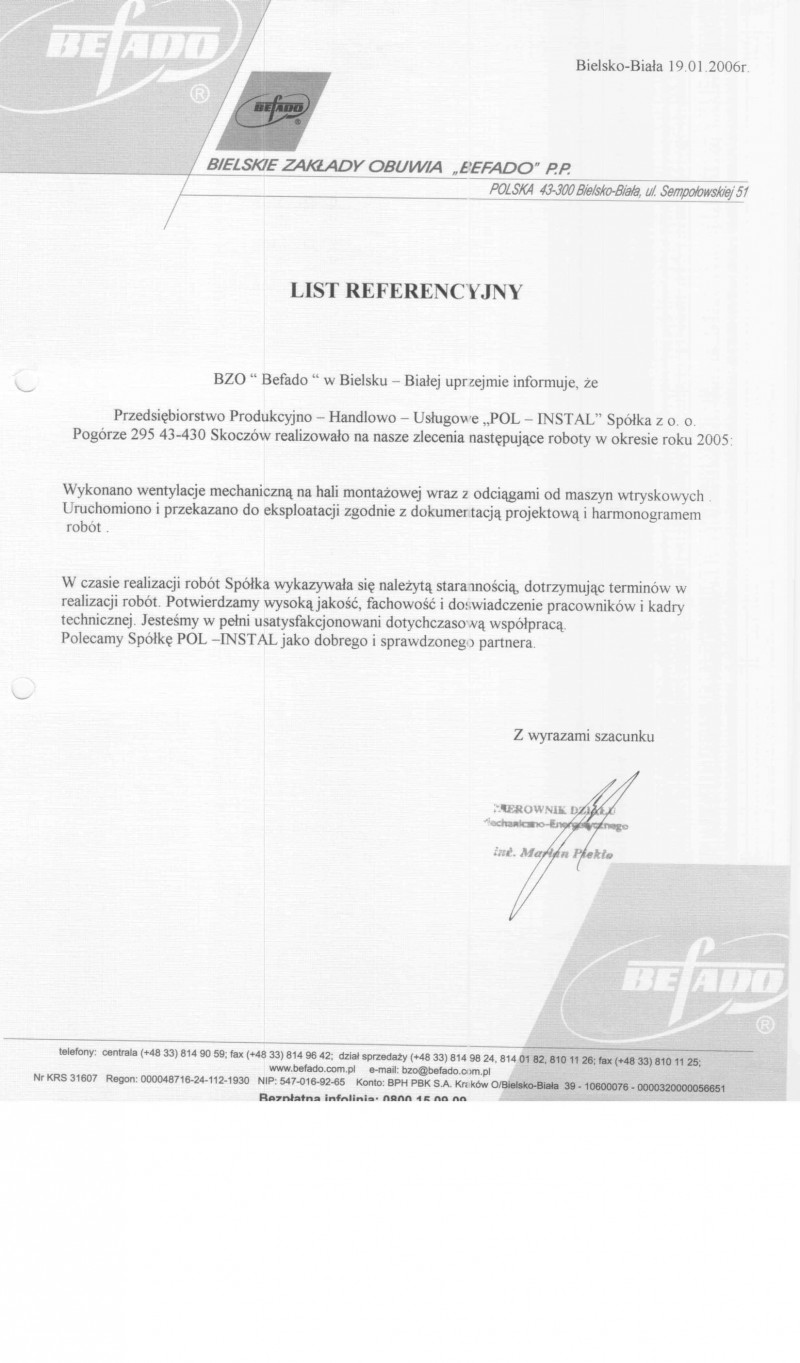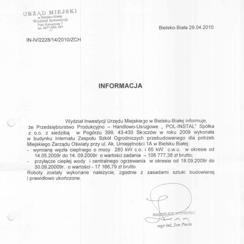 Posiadamy referencje, które obrazują zakres naszej działalności, zarówno w przemyśle, jak i budownictwie użyteczności publicznej, a także w gospodarce komunalnej – sieci ciepłowniczych, gazowych, wodociągowych, kanalizacyjnych.