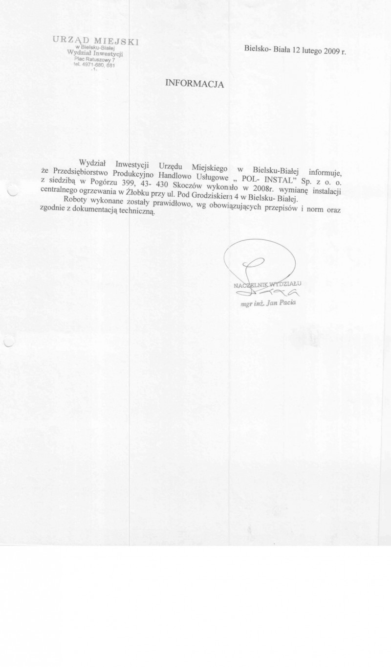Nadmienić pragniemy również, iż jako firma jesteśmy na liście wykonawców sieci gazowych PSG Zabrze.